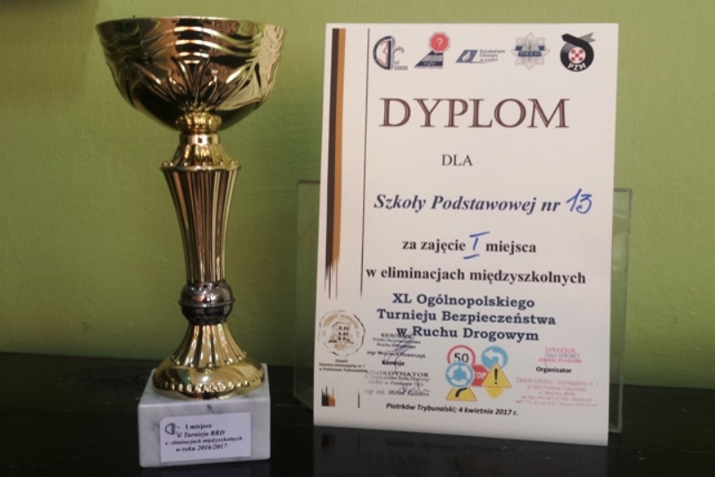 Uczniowie Szkoły Podstawowej nr 13 w Piotrkowie Trybunalskim zdobyli I miejsce w eliminacjach międzyszkolnych XL Ogólnopolskiego Turnieju Bezpieczeństwa w Ruchu Drogowym, które odbyły się 4 kwietnia 2017 roku w Szkole Podstawowej nr 3 w Piotrkowie Trybunalskim.