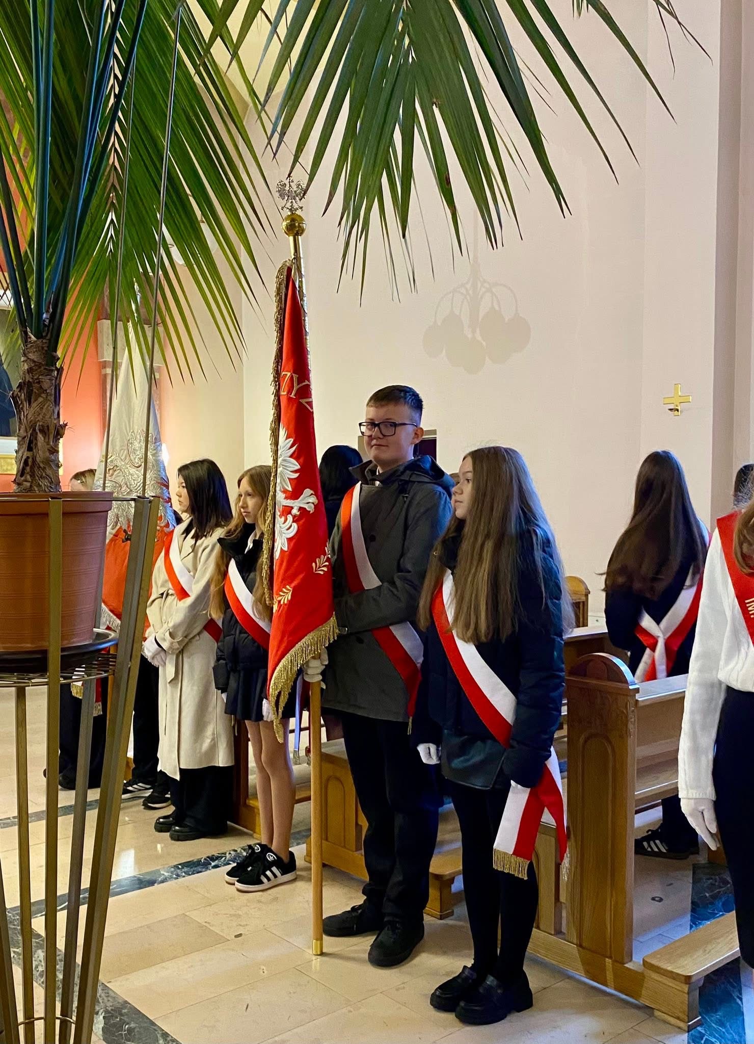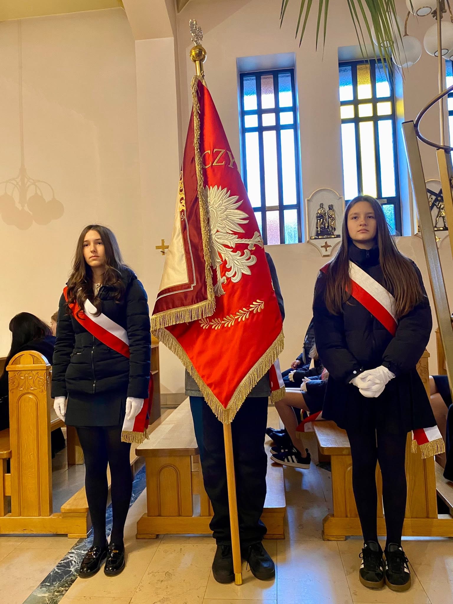 Naszą szkołę godnie reprezentowali: Pani Dyrektor Magdalena Majos oraz Poczet Sztandarowy w składzie Michał Baryła, Maria Matusiak, Maja Szerszeń, Oliwia Kopacka i Martyna Szewczyk.